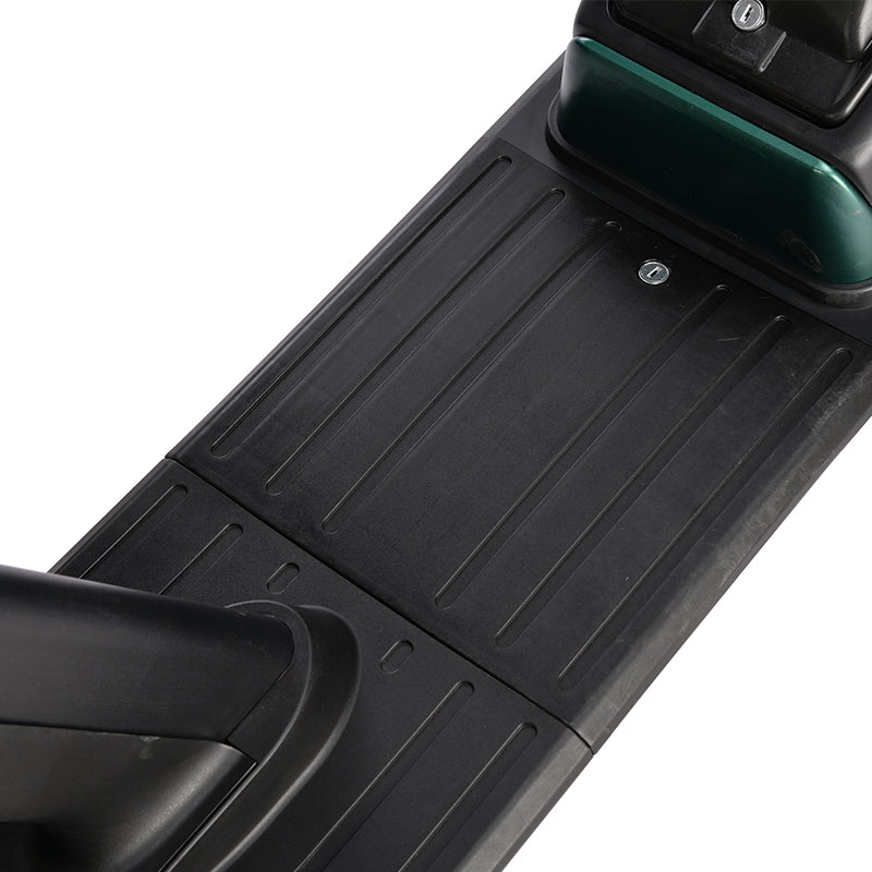 Die 52 cm über dem Boden positionierte Sitzbank sorgt für eine entspannte Sitzposition; die Zweiersitzbank und der breite Boden bieten bequem Platz für zwei Erwachsene. Die 10-Zoll-Reifen absorbieren in Kombination mit der Vorder-/Hinterradfederung Fahrbahnunebenheiten. Der Rahmen trägt bis zu 200 kg bei einem Leergewicht von ca. 75 kg. Ein serienmäßiger Gepäckkorb bietet zusätzlichen Stauraum für Einkäufe oder Gepäck.