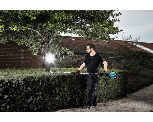 Die Trimmer schneiden alle Halme in einem Umkreis von 230 mm und 420 mm. Dichtes Gestrüpp beseitigst Du mit den Sensen- und Bodenschneideaufsätzen. Später schnappst Du Dir den Gebläse- oder Kehrbürstenaufsatz und sorgst so wieder für Ordnung auf Deinem Grundstück. Für all diese Arbeiten nutzt Du nur einen Motor und der nutzt zwei 18-V-Akkus, um in Fahrt zu kommen. Die Akkus sind nicht Teil dieses Angebots, aber Du besitzt mit Sicherheit schon passende Batterien zu Hause. Die MAKITA-Werkzeuge teilen gern. Akkus, die Du normalerweise in Deine Bohrmaschinen, Stichsägen, Blechscheren oder Betonverdichter steckst, passen auch in diesen Antrieb. Du musst also keine Akkus sammeln und hast mehr Platz für neue Werkzeuge. Der Antrieb selbst hilft Dir auch beim Platzsparen. Aufsätze und Antrieb lassen sich leicht verstauen und nehmen weniger Raum in Deiner Werkstatt ein als Geräte, die alle einen eigenen Antrieb haben.